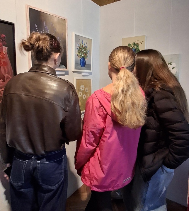 Nižší ročníky pak v KDJS zhlédli výstavu Jaroslavy Trpkové a s mobilními telefony si žáci zahráli na umělce 17. století. Měli napodobit pózy postav i šerosvit obrazů italského tvůrce. Tvořili vlastně originální fotoobrazy. Děkujeme!