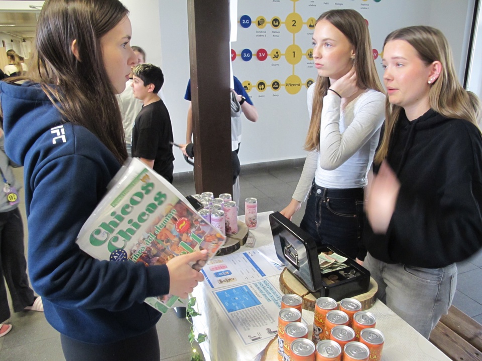 Ve středu 4. března 2026 studentská firma CHill´ n´Can působící pod JA Czech připomněla svým prodejem plechovek s nápoji všem ve škole blížící se Mezinárodní den žen.