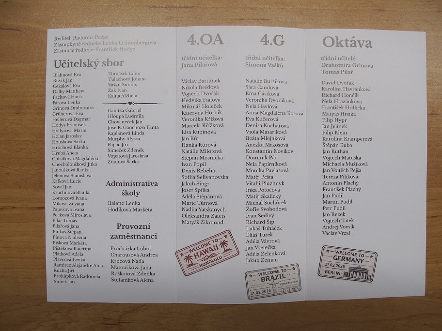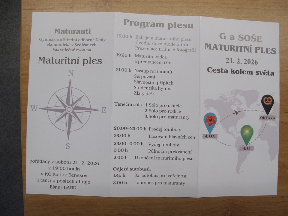 Celý večer odstartovala maturitní videa a předtančení, dále šerpování s bohatým programem a o půlnoci tradiční půlnoční překvapení. Nedílnou součástí byl i prodej maturitních novin. Celým slavnostním večerem provázel Jakub Trnobranský, náš bývalý student, k tanci i poslechu hrál Ešner band. Třídními profesory těchto tříd jsou a šerpování se ujali Tomáš Pilař, Jana Pilařová a Simona Vašků. Na závěr vybraní studenti přednesli projev. V proslovech poděkovali rodičům, učitelům i přátelům a v krátkosti shrnuli život svých tříd na škole. Zazněla i studentská hymna Gaudeamus.