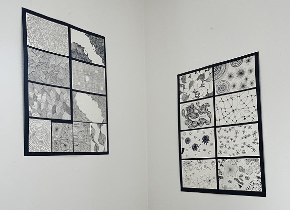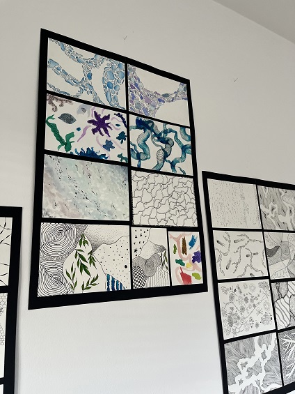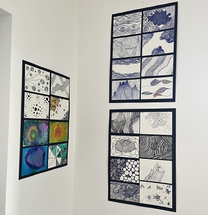 Paní učitelka výtvarné výchovy Adéla Plátková spolu se studenty naší školy připravila další zajímavou výstavu v čekárně veterinární ordinace Veterina Jezvinka na vlakovém nádraží.